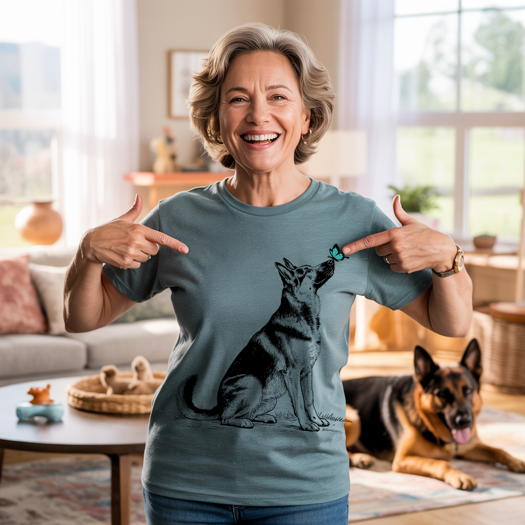 Dog lovers care deeply about the world our furry friends live in. That’s why we’ve chosen eco-friendly cotton shirts—gentle on the planet, and perfect for celebrating the bond with your pup.